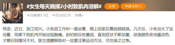 也同样有姐妹疯狂运动,导致运动过度产生抵触情绪,甚至出现肌肉溶解