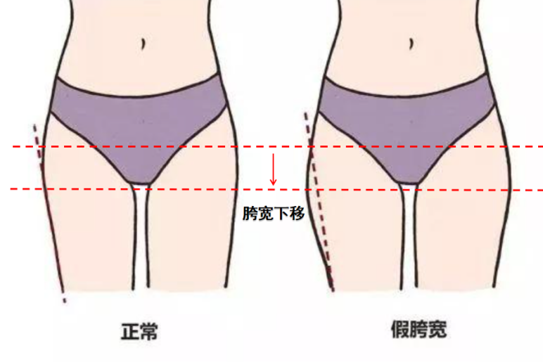 △如果视觉上的胯并不是真胯的位置,而是出现了下移,就说明出现了假胯宽。
