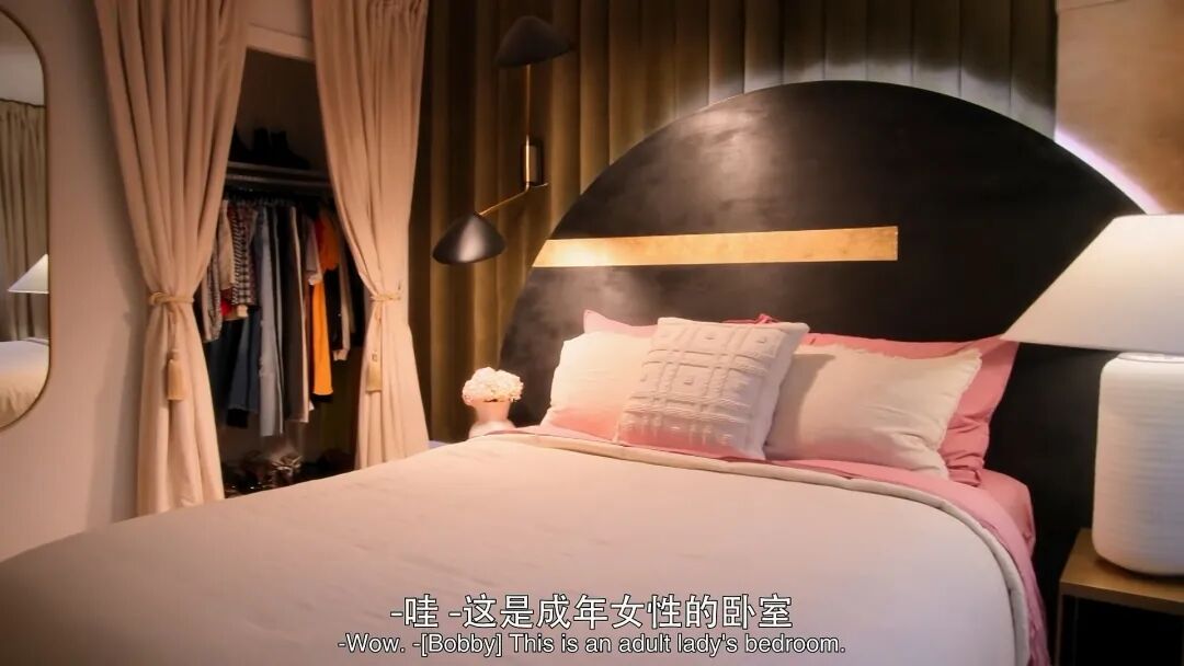 改造前的卧室昏暗、幽闭、缺乏温馨感,而在鲍比的巧妙设计下,这里终于有了女性卧室的模样。