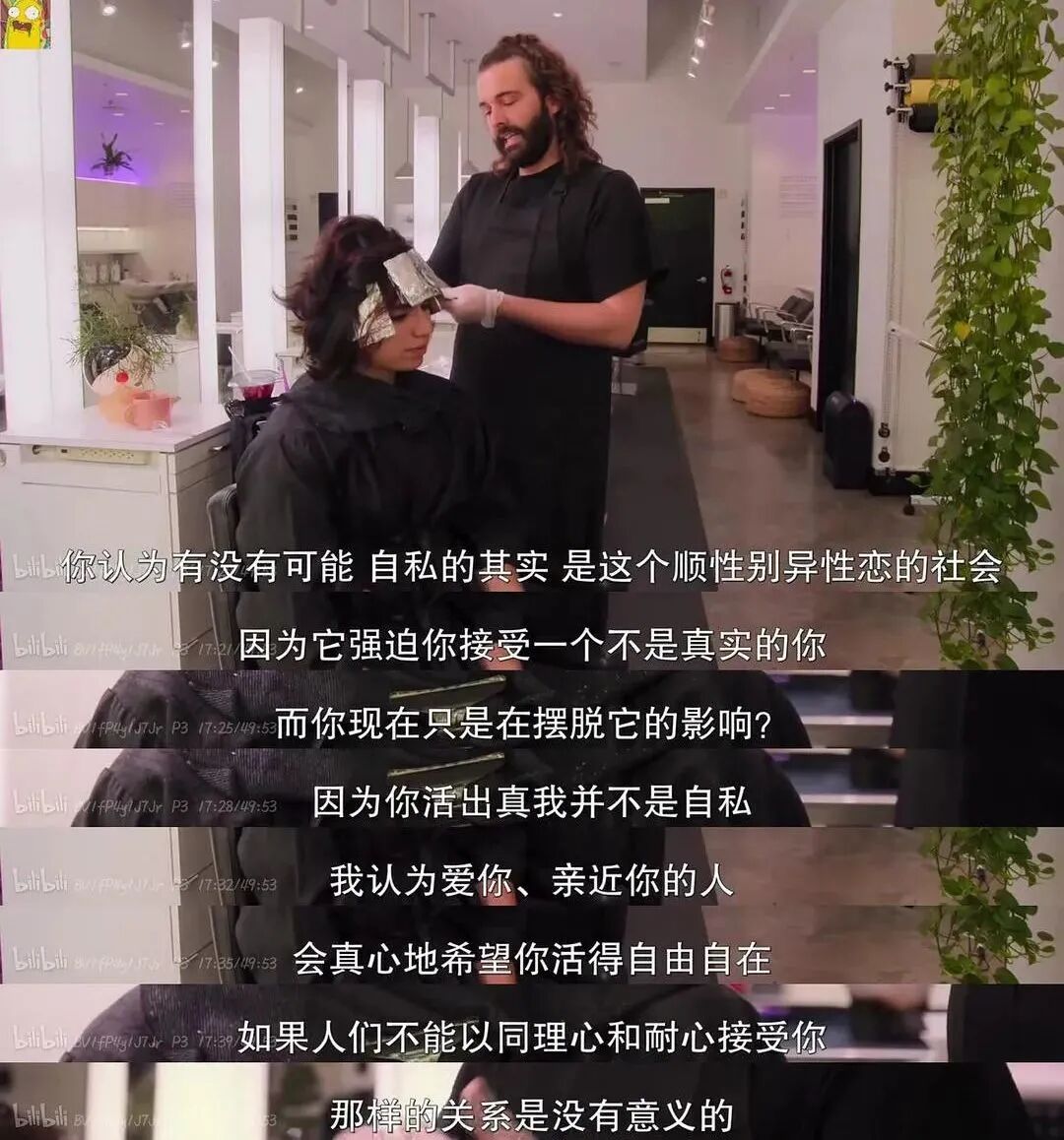 “我认为爱你、亲近你的人,会真心地希望你活得自由自在。如果人们不能以同理心和耐心接受你,那这样的关系是没有意义的。”