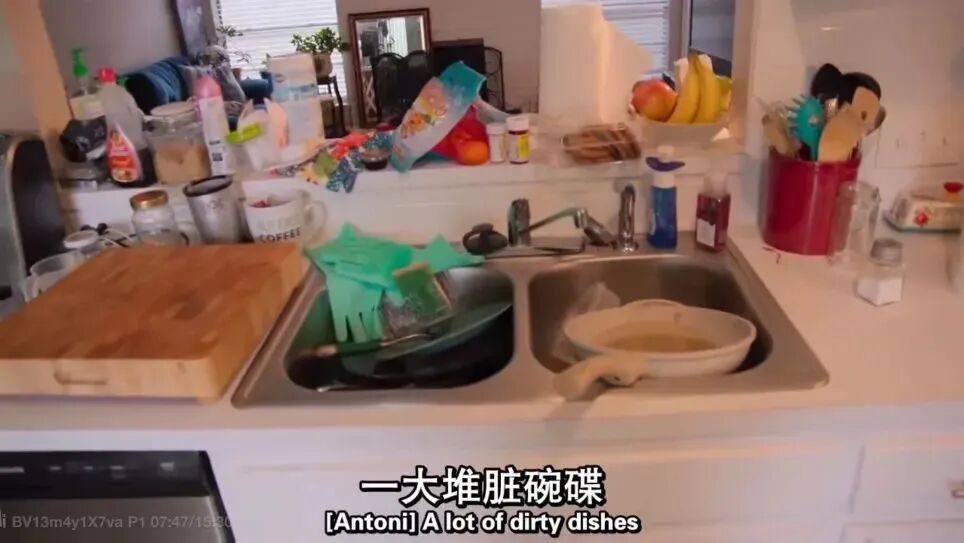 没洗的碗、东歪西倒的瓶子、无处安放的菜板……一眼望去,就是典型的脏乱差。
