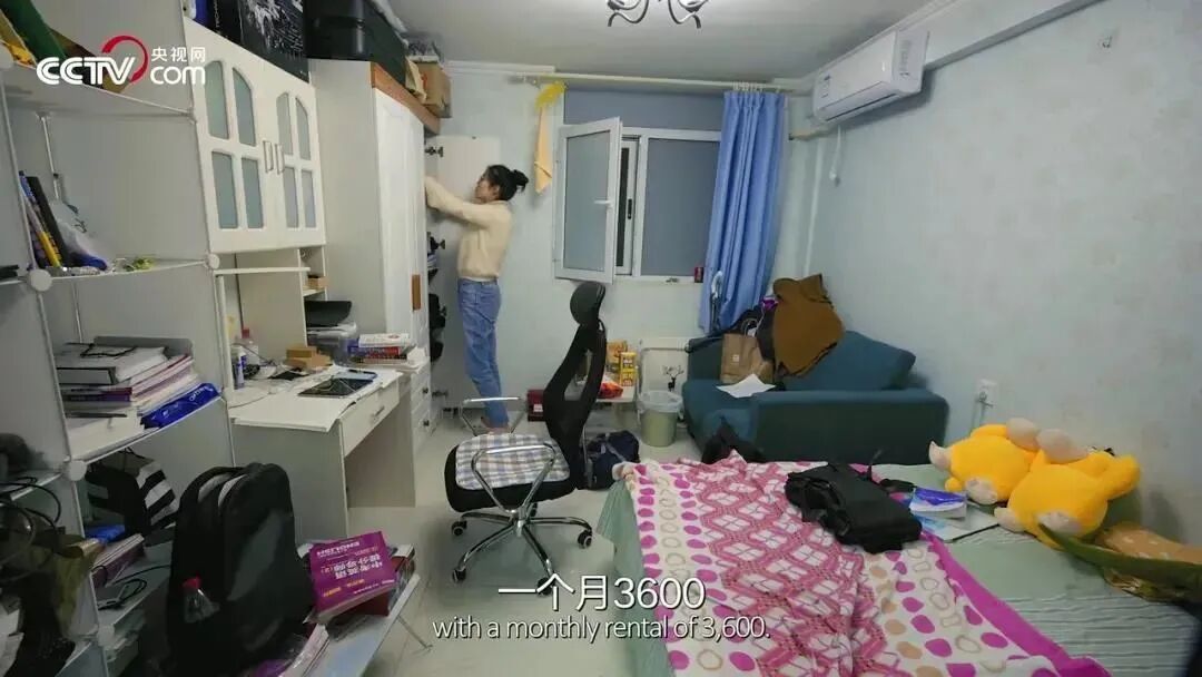 但面对北京的高额房价,还买不起房的她,只能挤在五环外一间逼仄狭小的出租屋里。