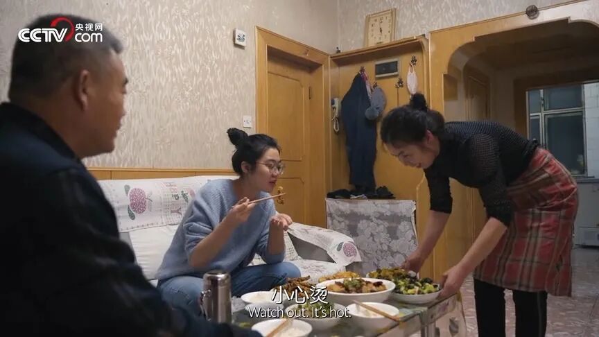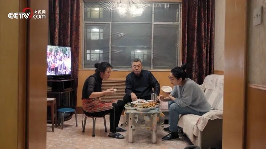 来到闫晶的父母家,也不难看出,这个家庭并不是什么大富大贵,吃饭都需要挤在客厅的茶几上吃。