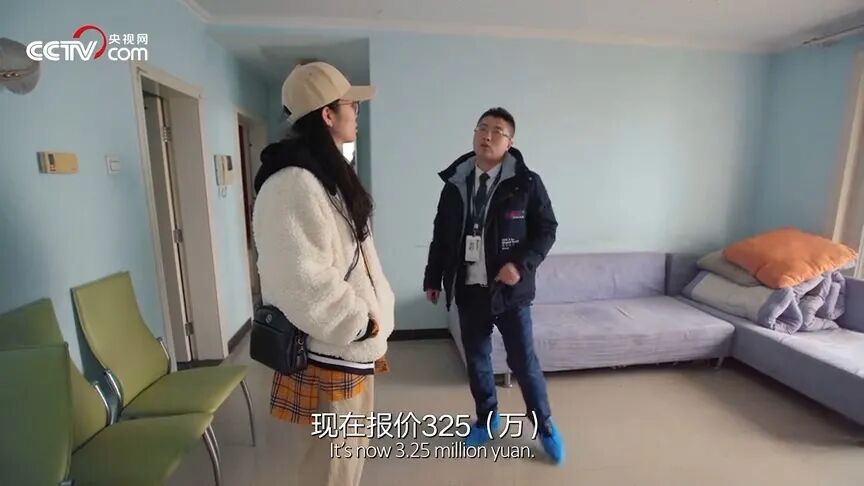 东奔西走,看了几次房,闫晶终于遇上了一套还不错的二手房,59.5m²,报价325万,朝南,客厅有一整面落地窗,还是双阳房。