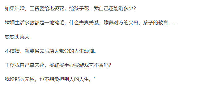 于是有人说:“只要不买房、不结婚、不生娃,就可以避免人生的大部分烦恼。”