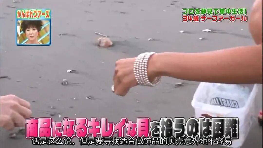 为了能吃得上饭,金泽女士每天都会在冲浪之后,去海边捡一些贝壳。