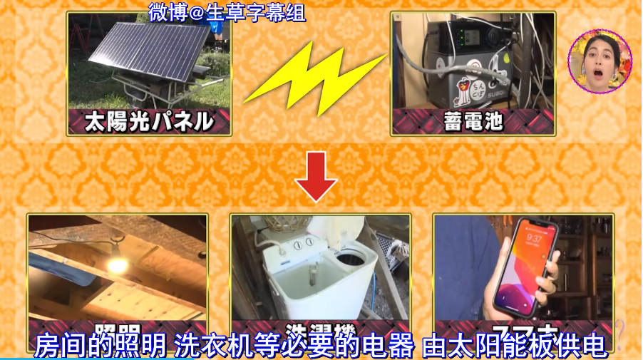 太阳能板是在家具城中买到的,放在外面,等有太阳出来的时候,就能将阳光收集到蓄电池里,满足屋内基础照明,以及运行洗衣机等必要电器。