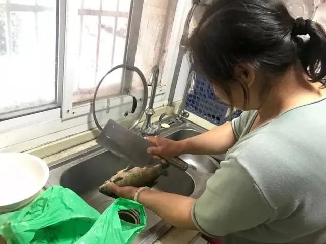 2019年,陈锦妹回到老家,想着陪伴女儿长大,找了一份杀鱼的工作,但每个月的收入十分微薄,仅有1900元。