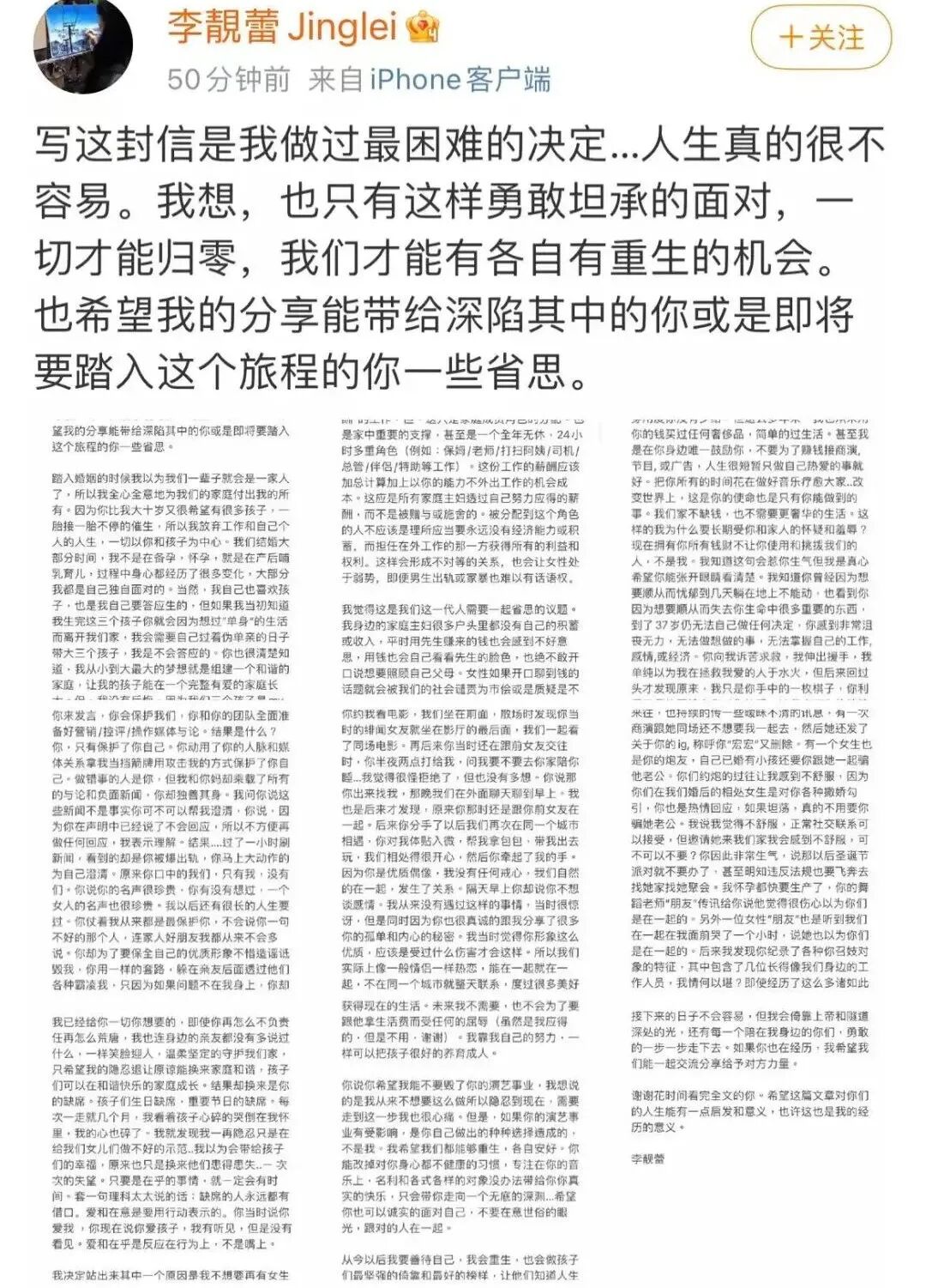 昨天晚上王力宏前妻李靓蕾发布的“战斗檄文”,大家都看了吗?