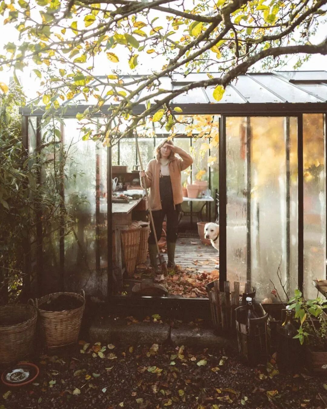 院子里的透明花房也很漂亮,但想要让它常年保持颜值,就得勤快点擦玻璃、扫树叶。