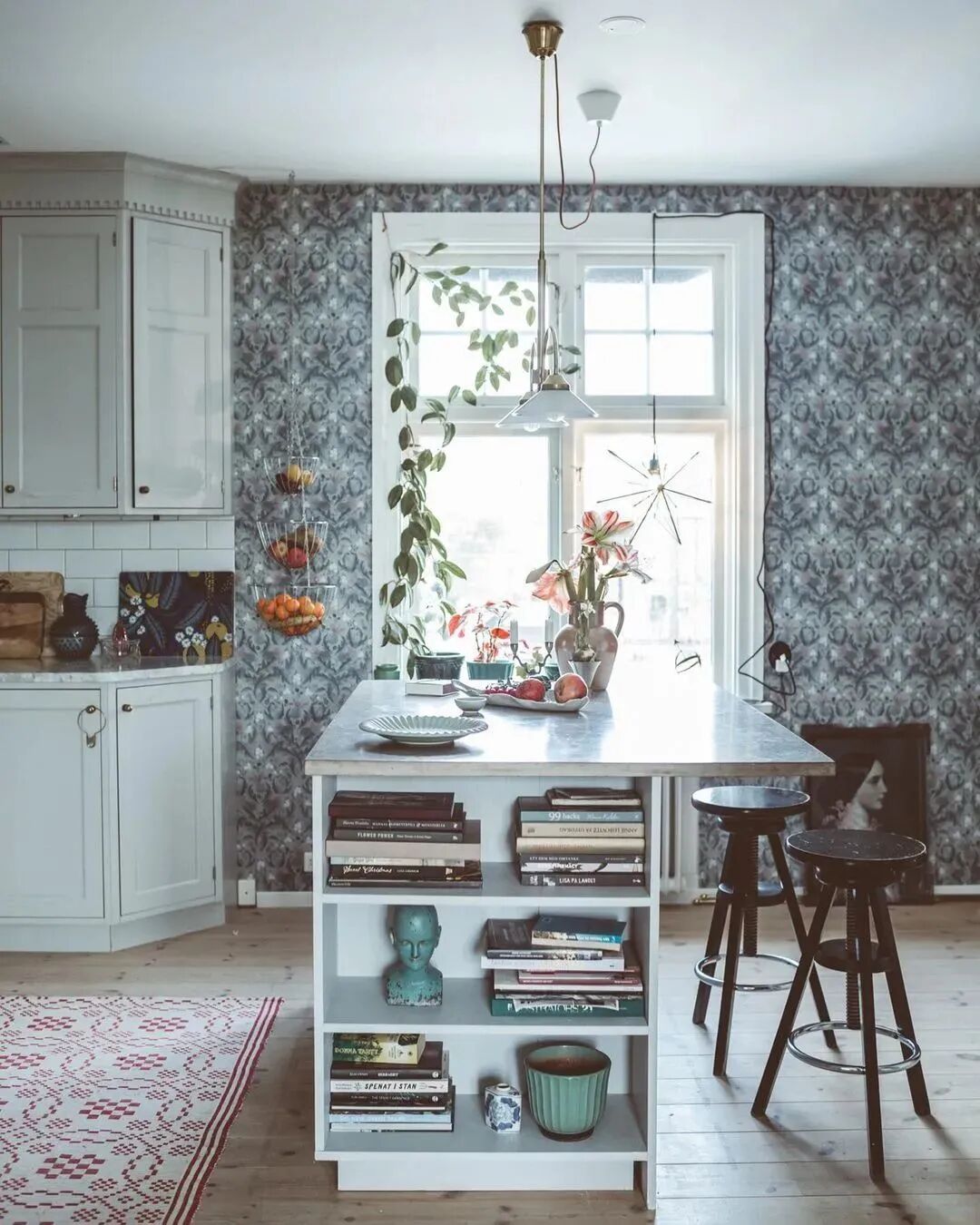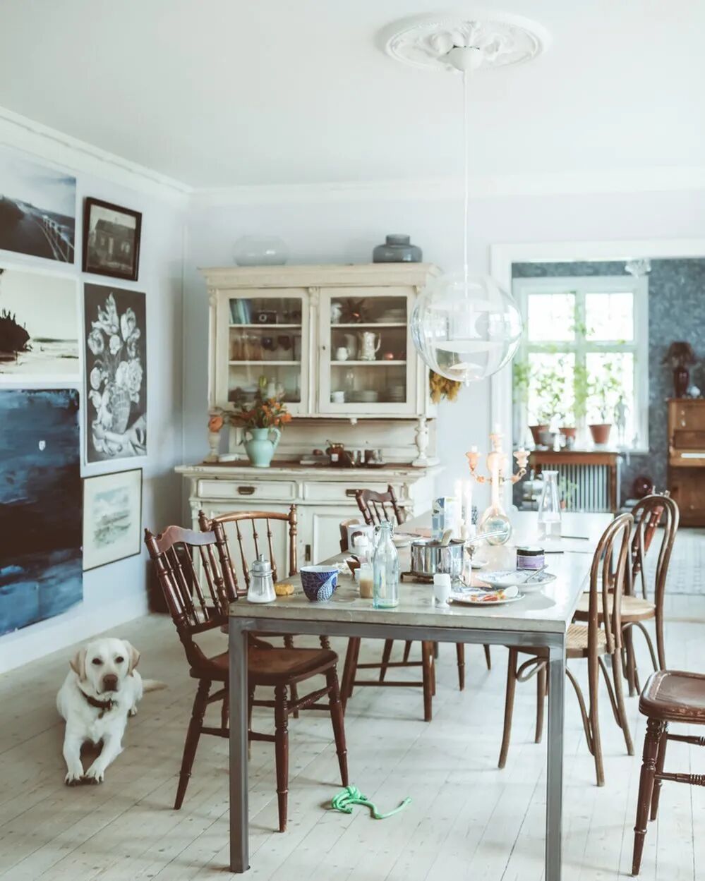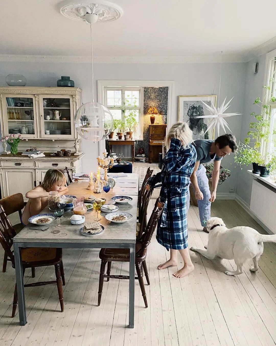 雾霾蓝、黑白画框、留白的墙、明亮的落地窗、碎花、绿植、开放式厨房、大餐桌......大家所喜欢的北欧风元素,在她家里都有!