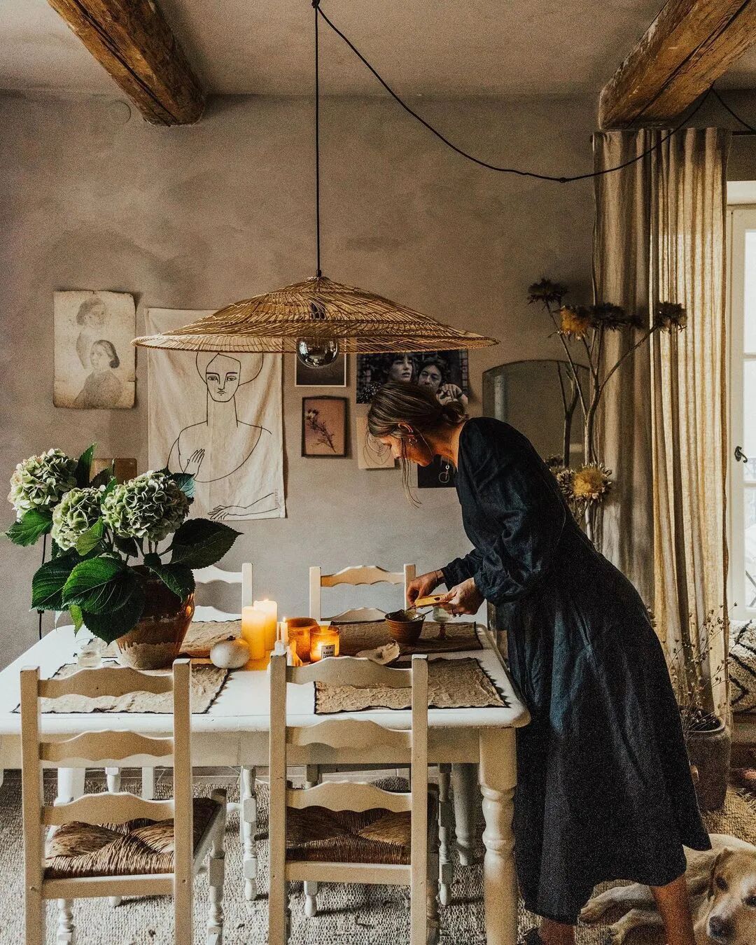 走上二楼,映入眼帘的是一个带有陈旧气息的空间,这里是Kristin的休闲室,木质桌椅加上藤编装饰,治愈又放松。