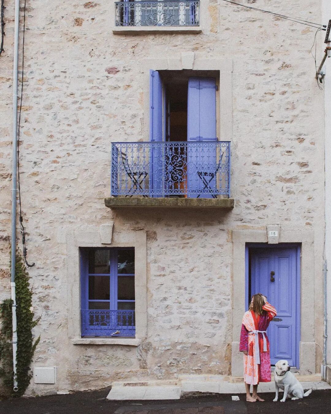 休闲室外连着一个小露台,闲暇时,她最喜欢和狗狗一起坐在这里,安静地享受阳光。