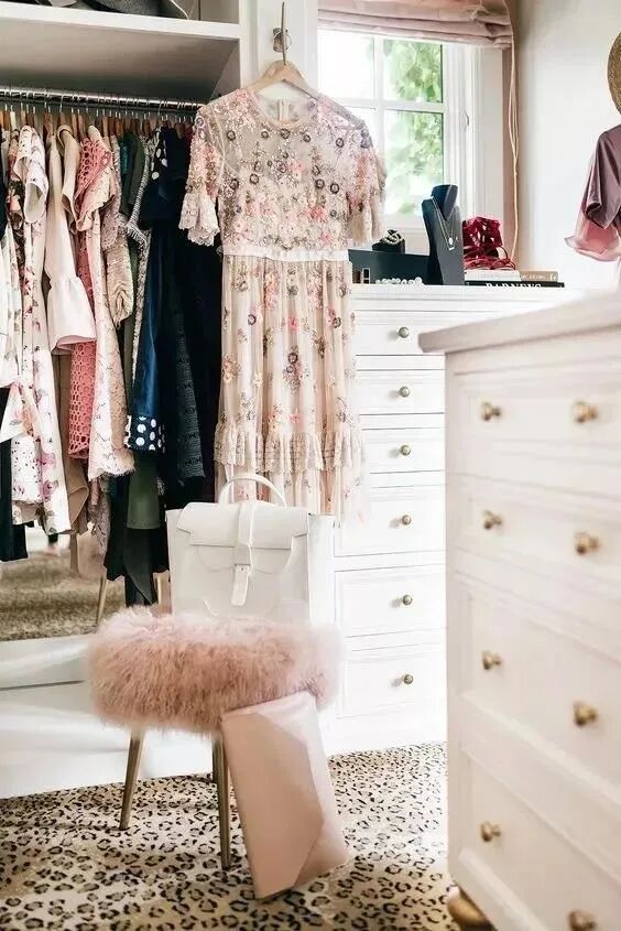 衣服鞋子全部分门别类,收纳得整整齐齐,挑个衣服就跟逛商场一样。
