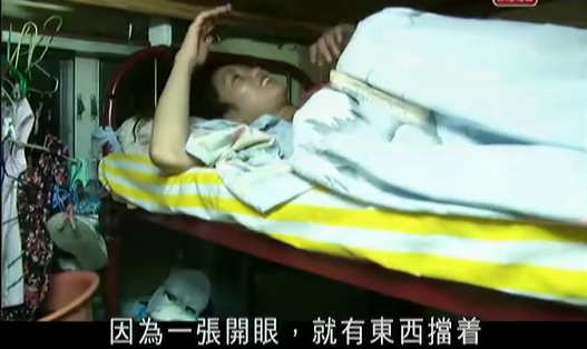 睡觉的地方也非常压抑,躺上去想举起半截手都做不到。