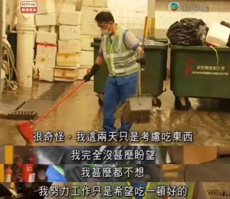 节目组给他安排的身份,是去当扫地的清洁工,每小时薪水只有25港币(约合人民币20元),一天硬性工作9个小时。