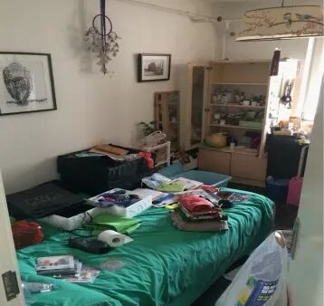 15m²的出租屋内,行李衣服都堆到了床上