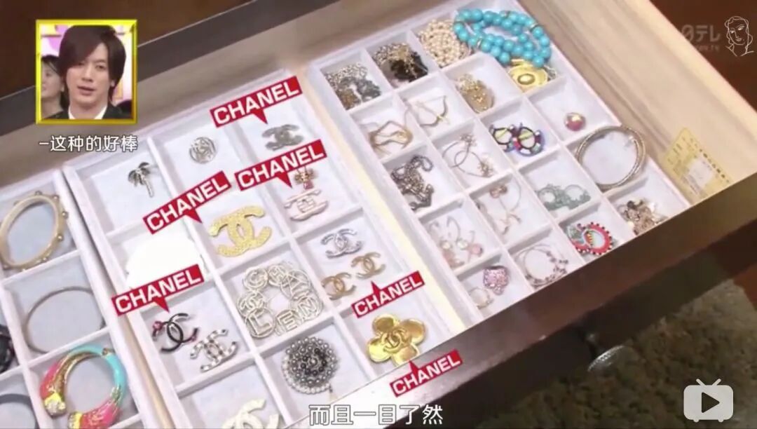 正中间的黑色斗柜则用来收纳森泉的各种饰品,CHANEL、TOM FORD、CHLOE、LV……各种大牌让人眼花缭乱。
