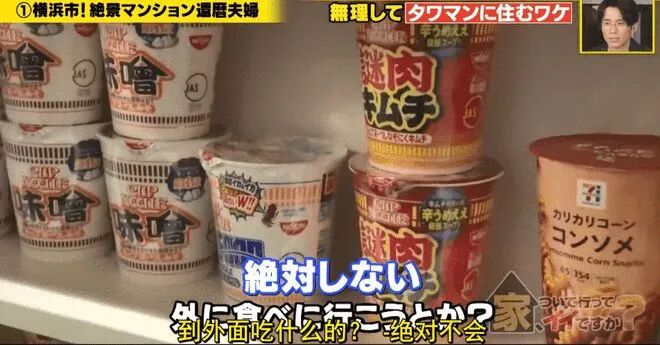 家里还备着不少的杯面,因为夫妻俩是绝对不会下馆子吃饭的。