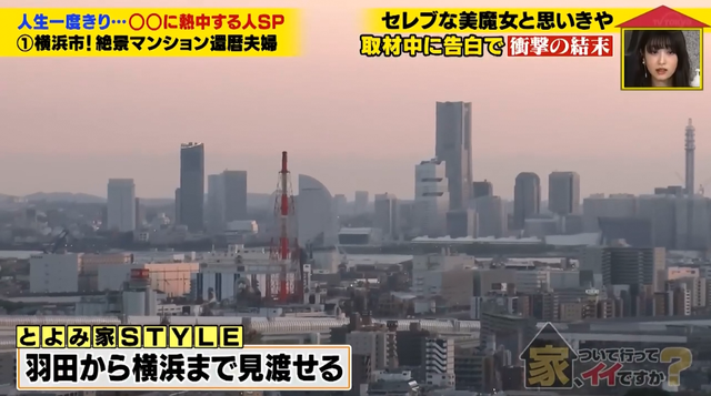 站在落地窗一旁,可以眺望到日本羽田机场、横滨地标塔。
