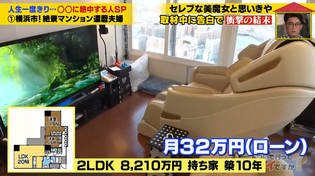 而这样一套靠近地铁、景色优美的公寓,价格自然也不会便宜,售价高达8210万日元(约合人民币414万元),每个月的房贷就要32万日元(约合人民币1.6万元)。