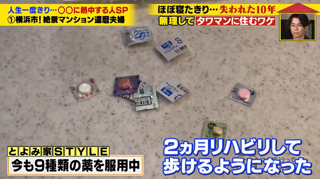如今虽然康复,可以正常走路了,但还是要一直坚持锻炼、吃9种药物。