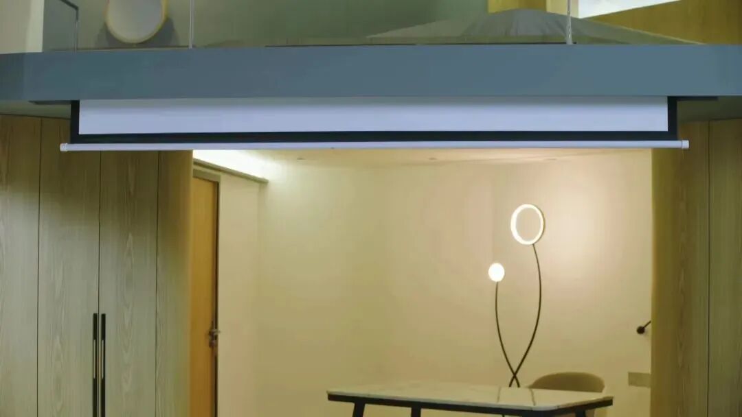 电视墙取消后,新增了一个隐藏式投影幕布,有观影需求的时候,就把它放下来即可。