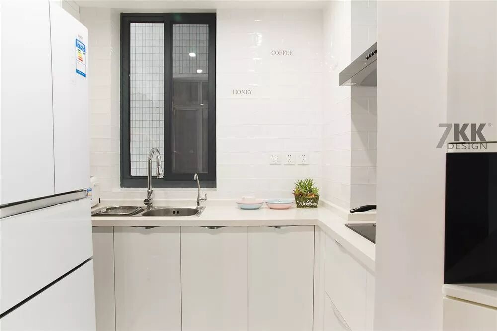 厨房仅有4.2㎡,拿-洗-切-炒-的动线完整,还可以放置一个60公分的冰箱。
