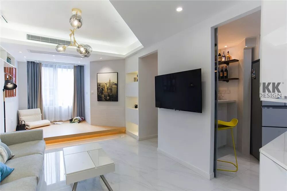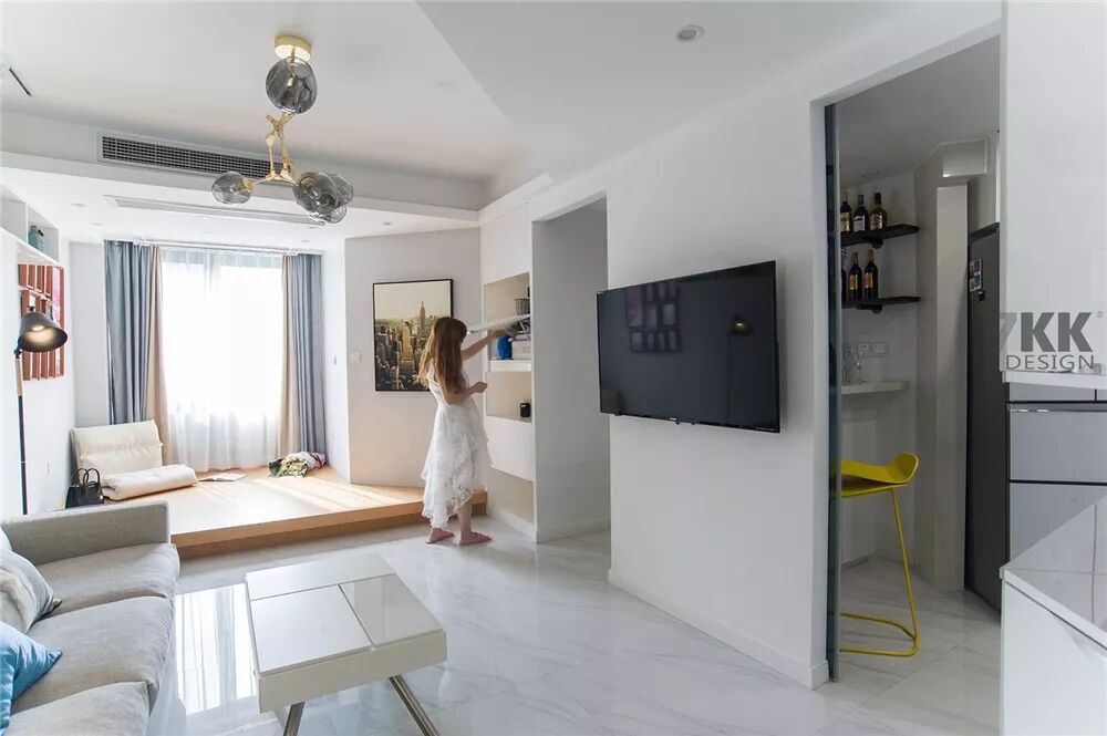 再把阳台包了进来,阳光透过大大的落地窗洒进屋内,别墅般大气通透的感觉一下子就出来了。