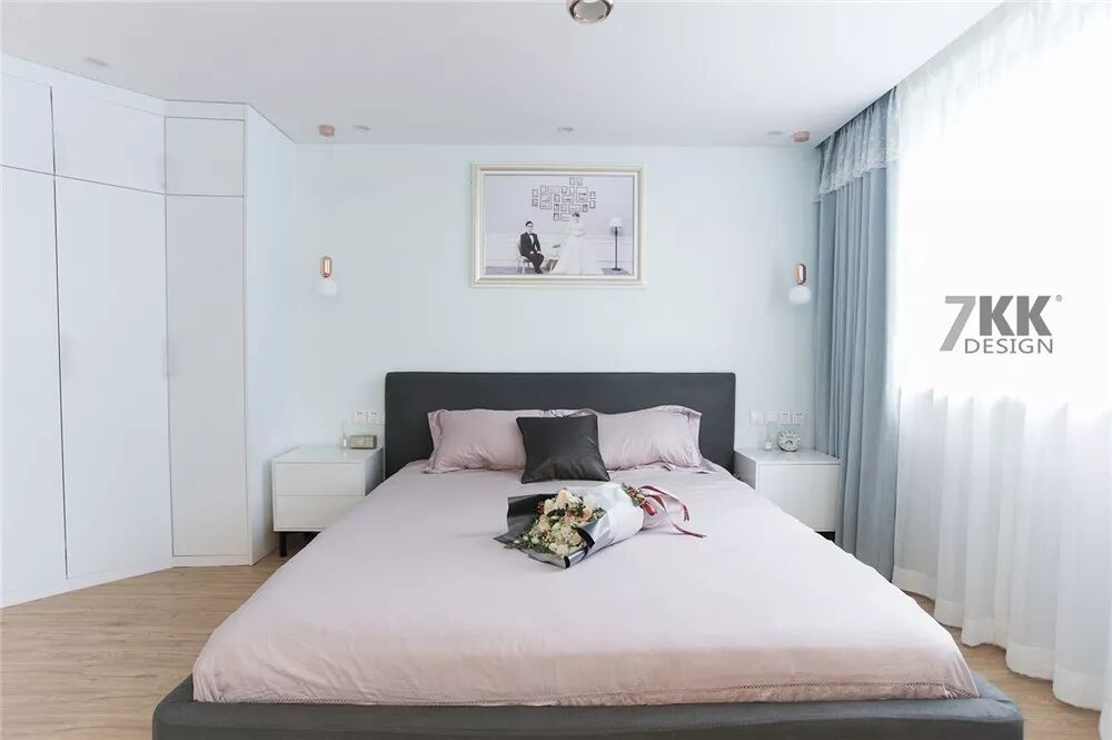 为了让这里不显压抑,陈曦不仅在吊顶中暗藏了灯带,还在床头位置开设了一扇窗,引入自然光。