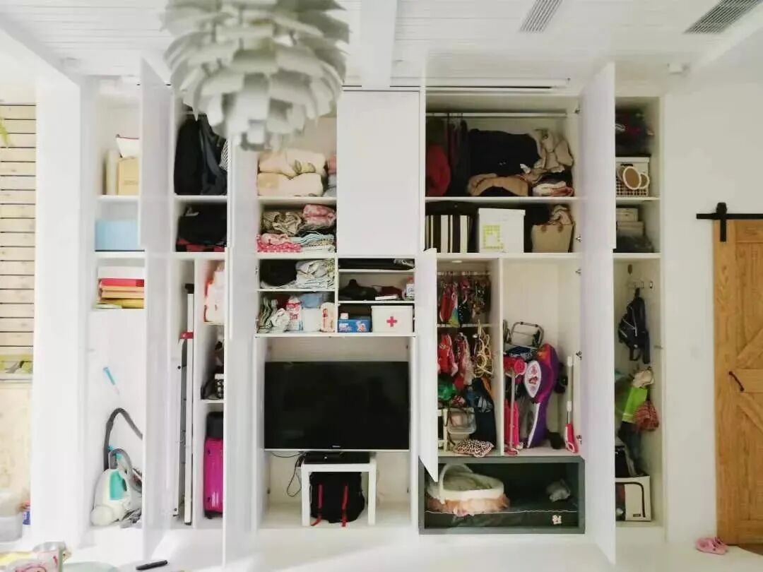 除此之外,丹子设计了足足100个柜子,完全能满足一家五口、三只狗的所有收纳需求。