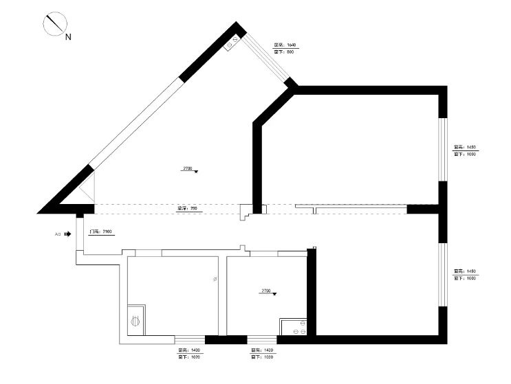 这个奇葩户型,是一个老小区里的二手老破小,它面积小、布局怪异、采光极差。