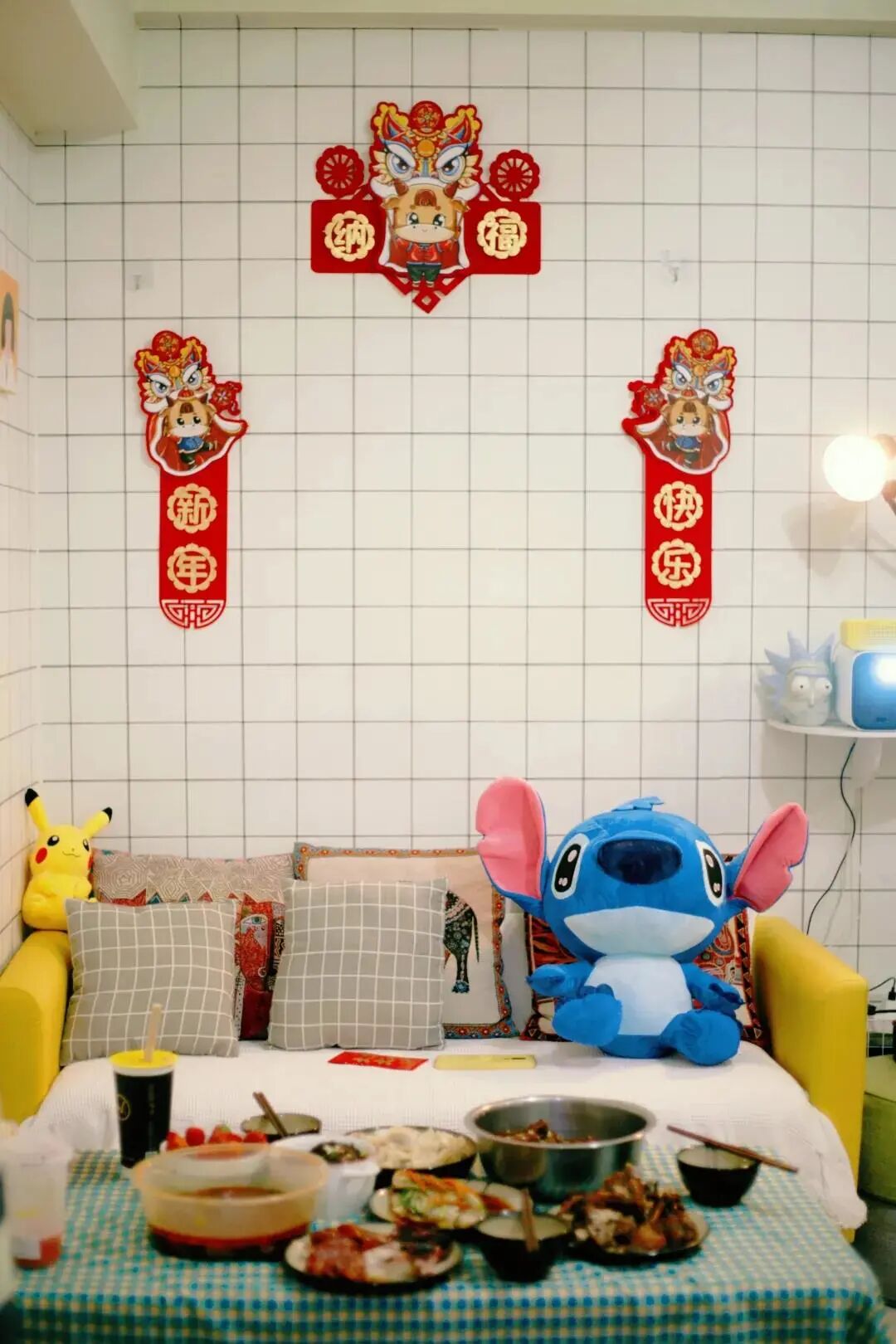 我觉得有意思极了,虽然这样的贴对联方式,总归有一些孩子气,但或许也能给出租屋带来别样的过年氛围呢?