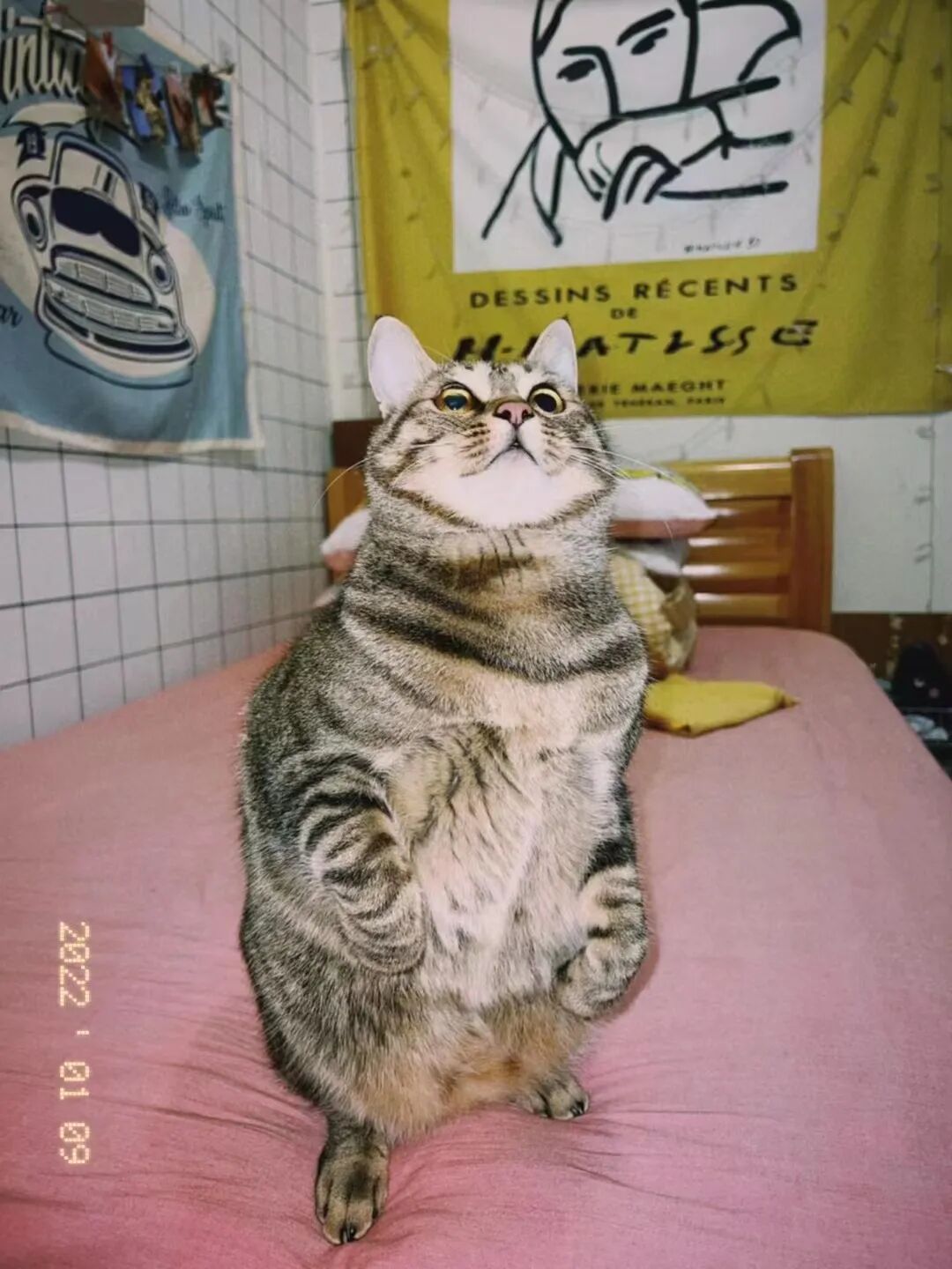 然后我还买了新的床单被套,方便我家主子在上面自由打滚、飞翔。(粉色的床品有木有很衬主子的肤色?)