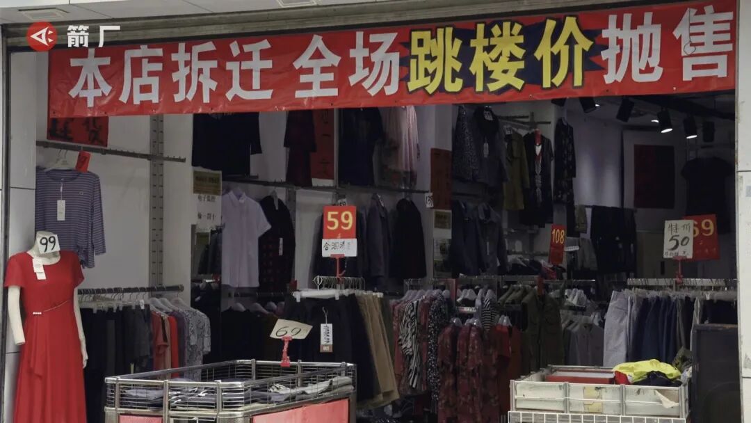 支架钢板沿路搭成了好几堵墙,曾经客满的商铺如今萧条极了,“退伍清货”的标语比商品还要醒目。