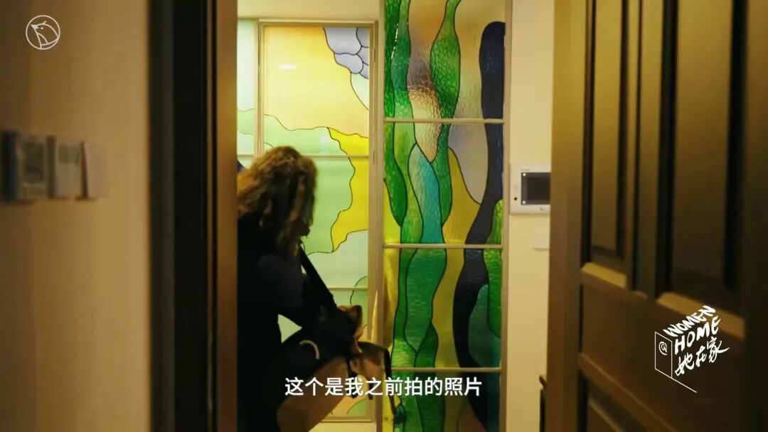 除了旧家具,叶静家里最抢眼的,便是这几扇彩绘玻璃门。