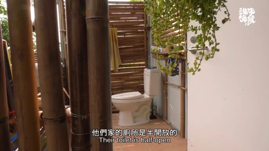 比如,上厕所的马桶安装在室外,用半堵竹子围成的墙,做成了半开放的形式。