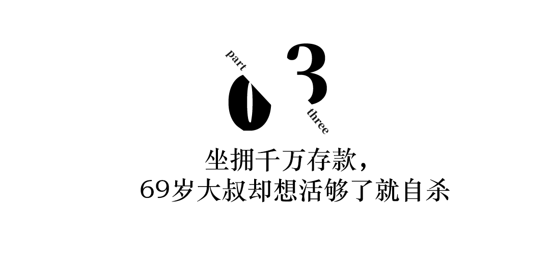 甚至一些日本老人曾坦言说:“如果钱都花完了,我可能会考虑自杀之类的事情。”、“人总有一死,那还不如早点死干净,我根本不想要什么长命百岁。”