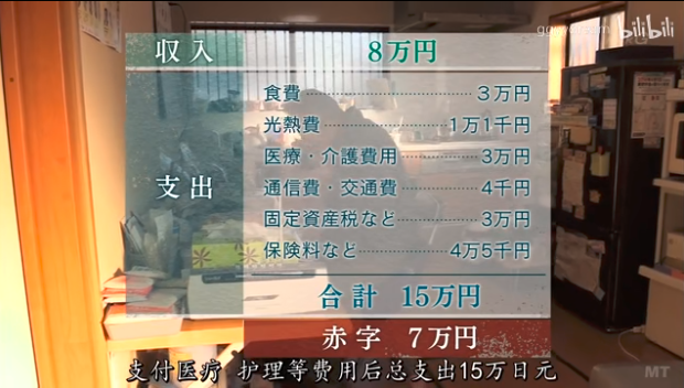 他们早已退休,但因为要养活同住的母亲、儿子和孙子,吉春只能继续工作,加上惠子的退休金,两个人每月能有37万日元收入。