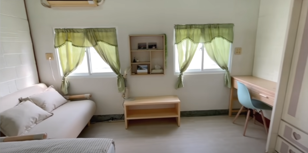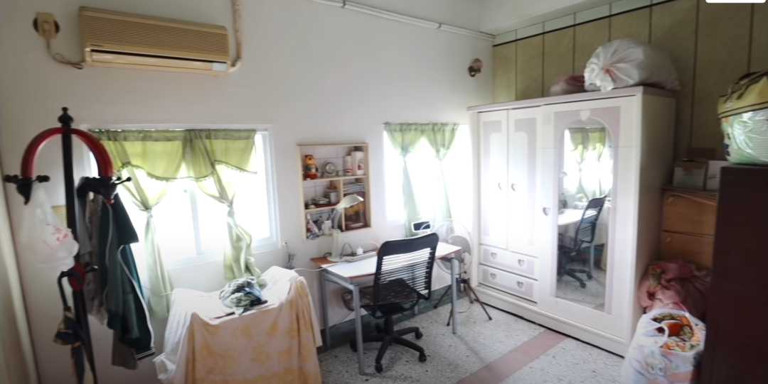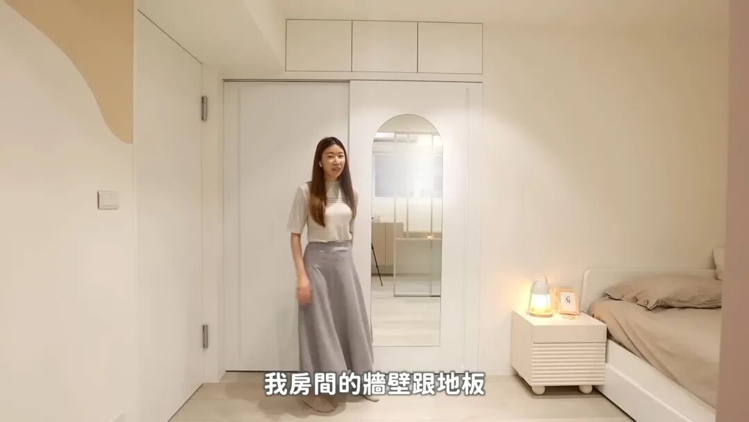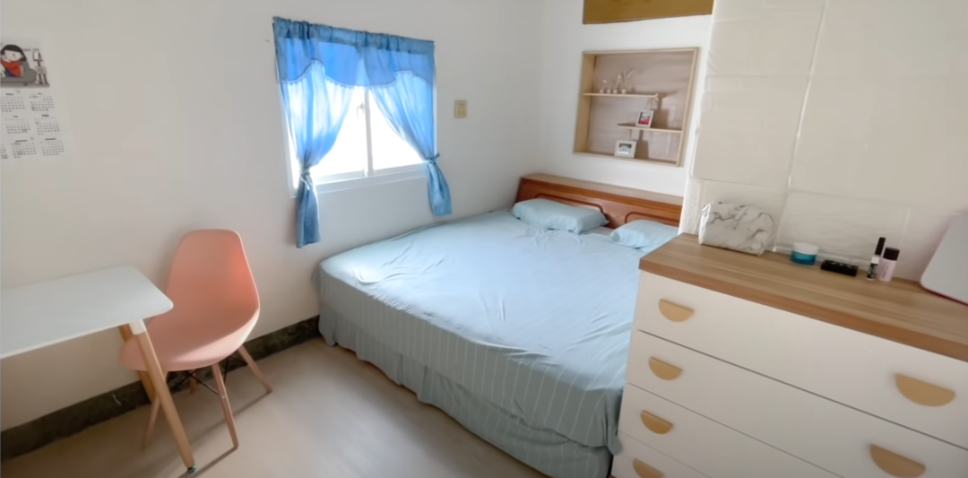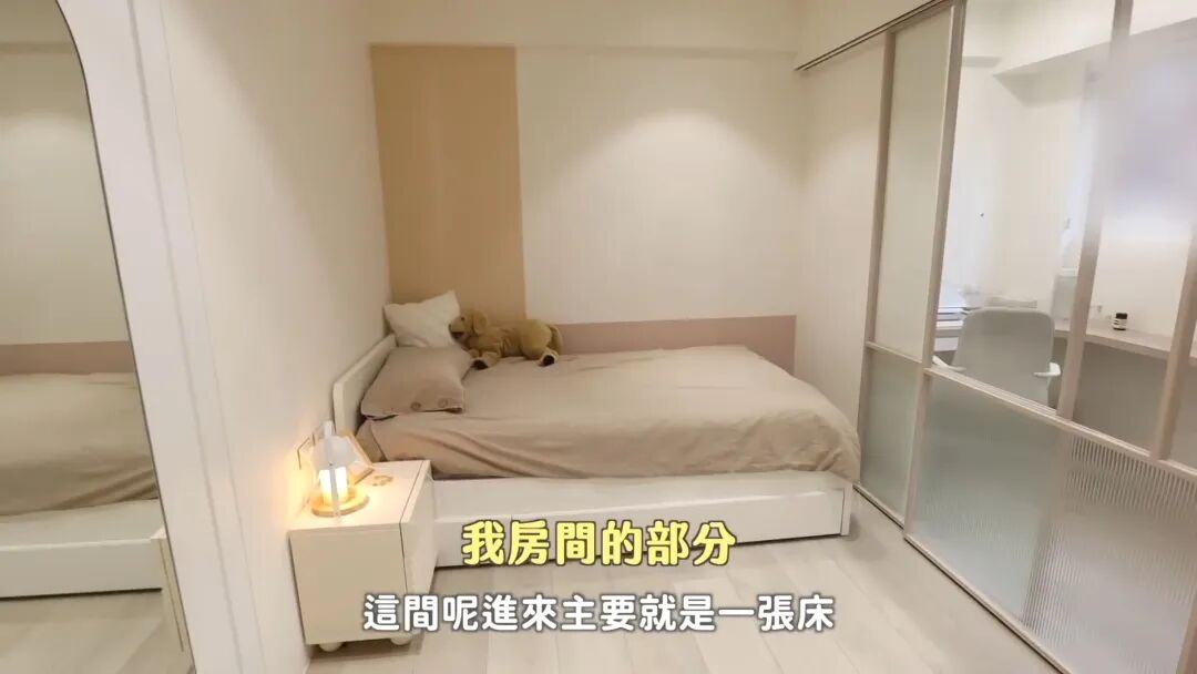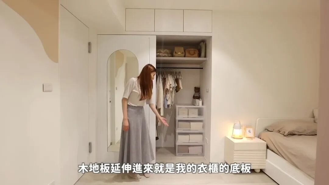 她的“衣柜”,是通过在房间里“挖个洞”来实现的。倘若你不仔细看,还真不一定能发现这个巧妙又省钱的设计。