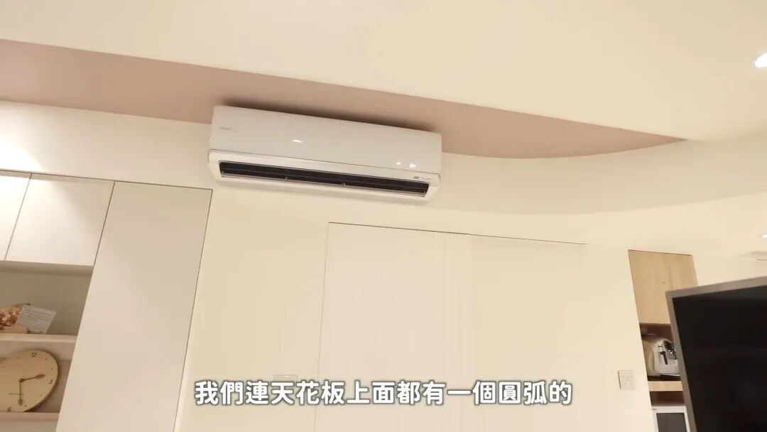 天花板采用了圆弧设计,搭配粉色跳色,又与玄关遥相呼应。