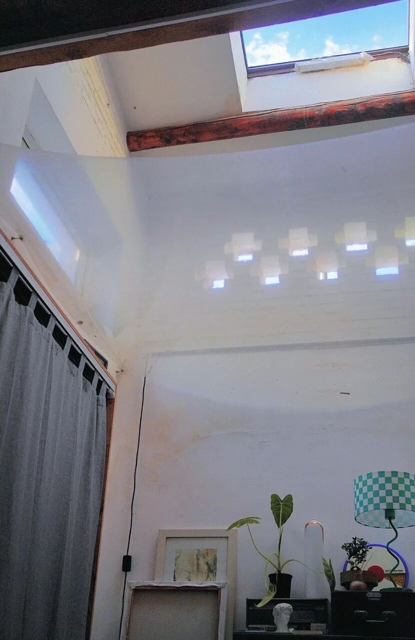 他躺在客厅的沙发上,抬头就能看到天空,晴天的时候,阳光穿过挑高五米的南北两面天窗洒在脸上,雨天的时候,还能看到雨滴滴落在头顶的天窗上,特别治愈。