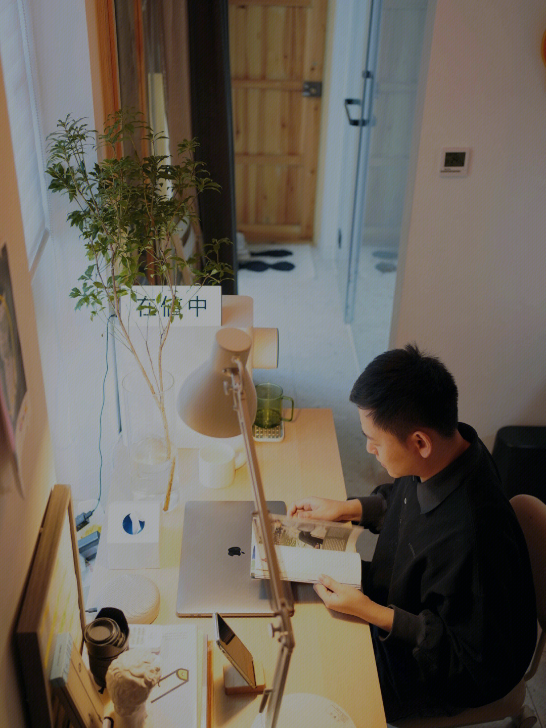 新家结构很有艺术感,同时有很多木质材料,所以以太想布置个既有设计感又有氛围的工作区。
