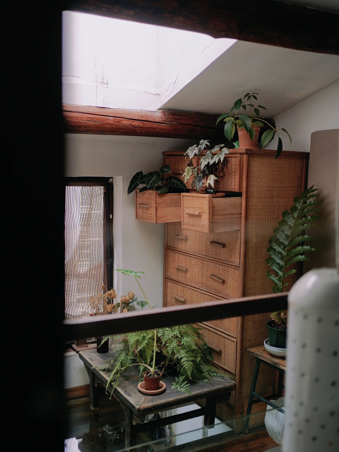 窗户能连接室外露台,暂时放置了一些植物,平日里以太也可以在这看书、喝茶、休息。