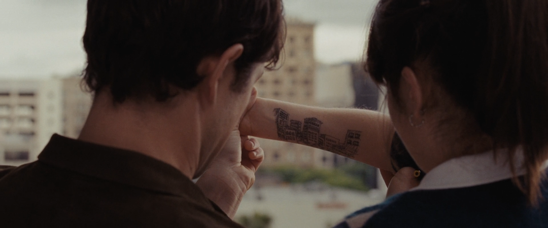 他带她来到自己最爱的公园,一起坐在长椅上,最后他把眼前的风景画在了她的手臂上。