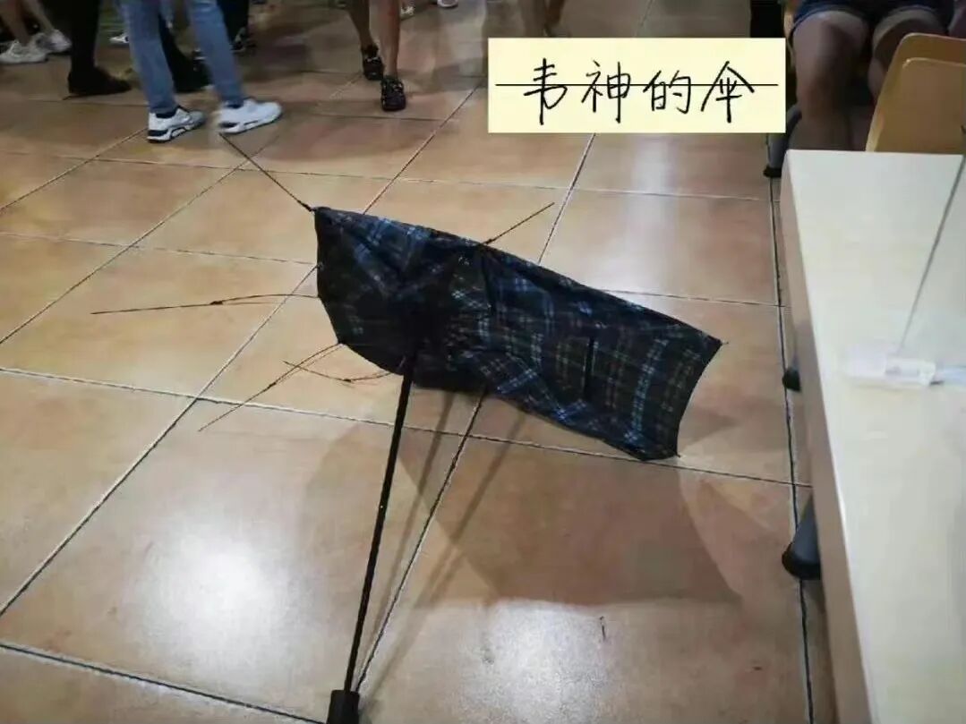 巧的是,前两天又有人在同一地点遇到了他,拍下了他的饭和伞。