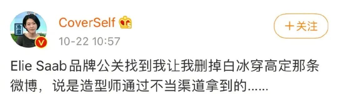 等于是承认,白冰穿的那条裙子的确是Elie Saab的,并且获取的渠道不正当。