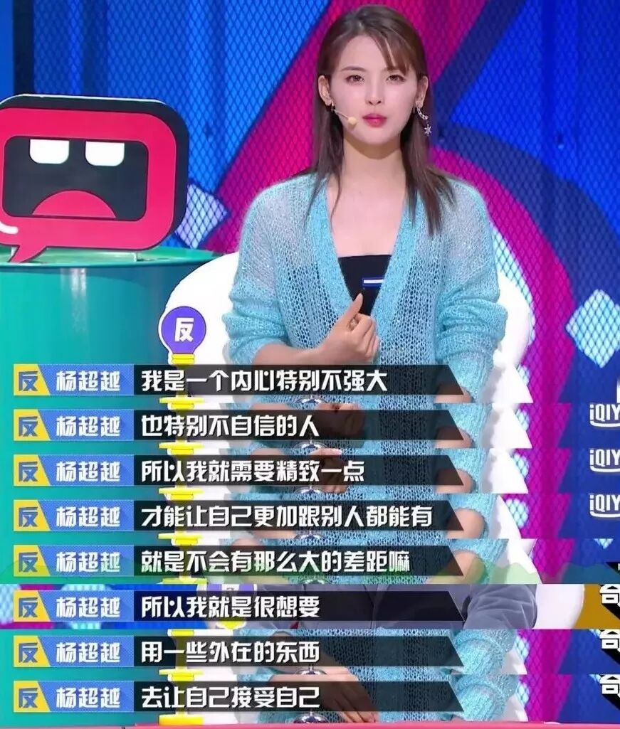 就像杨超越在《奇葩说》中说的,因为自己内心不够强大,不够自信,所以想要外在精致一点,才不会让自己感觉与别人差距太大。