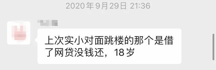 9月25日,某小学对面,一个18岁的高中生,因为借了网贷没钱还,于是跳楼轻生;