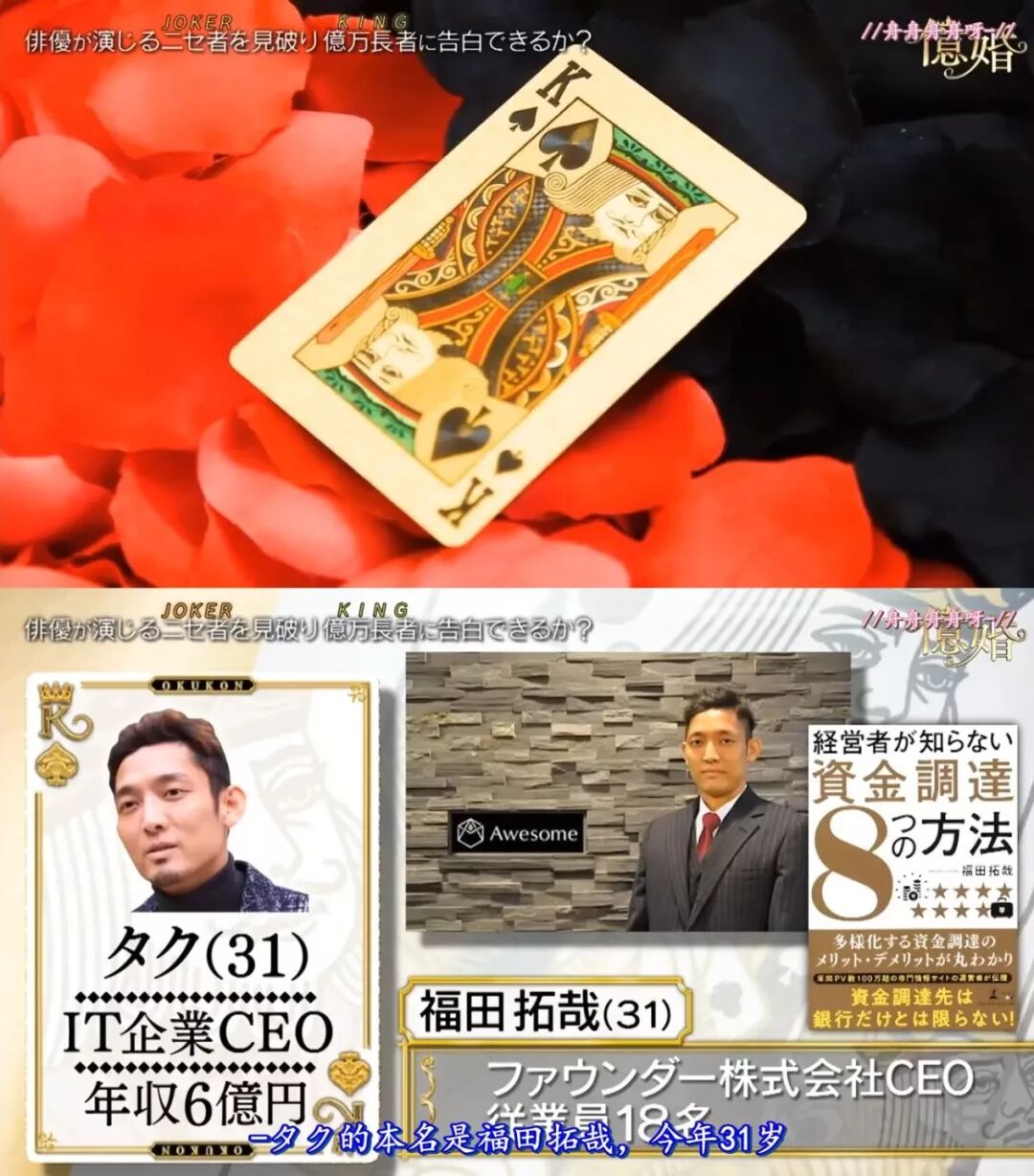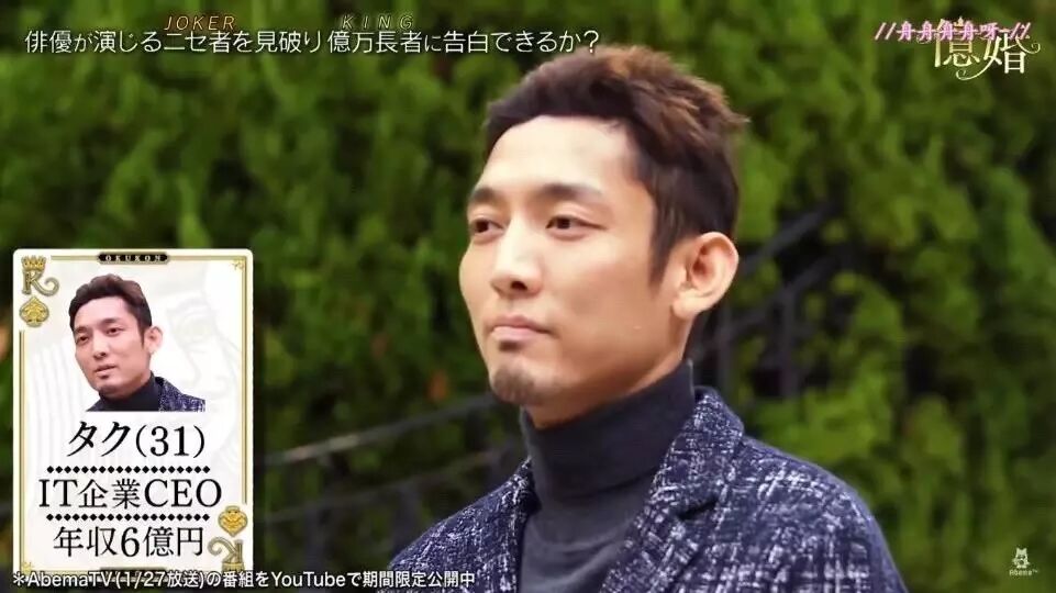 节目中的4号男嘉宾,自称是IT企业的CEO,31岁,年收入6亿日元(3600万人民币)。